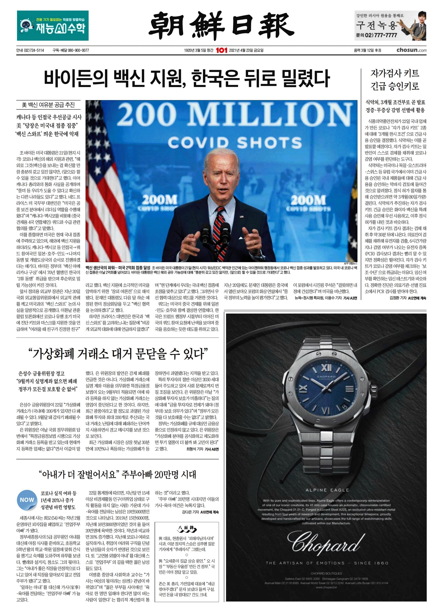 | 조선일보 | 바이든의 백신지원 한국은 뒤로 밀렸다 |