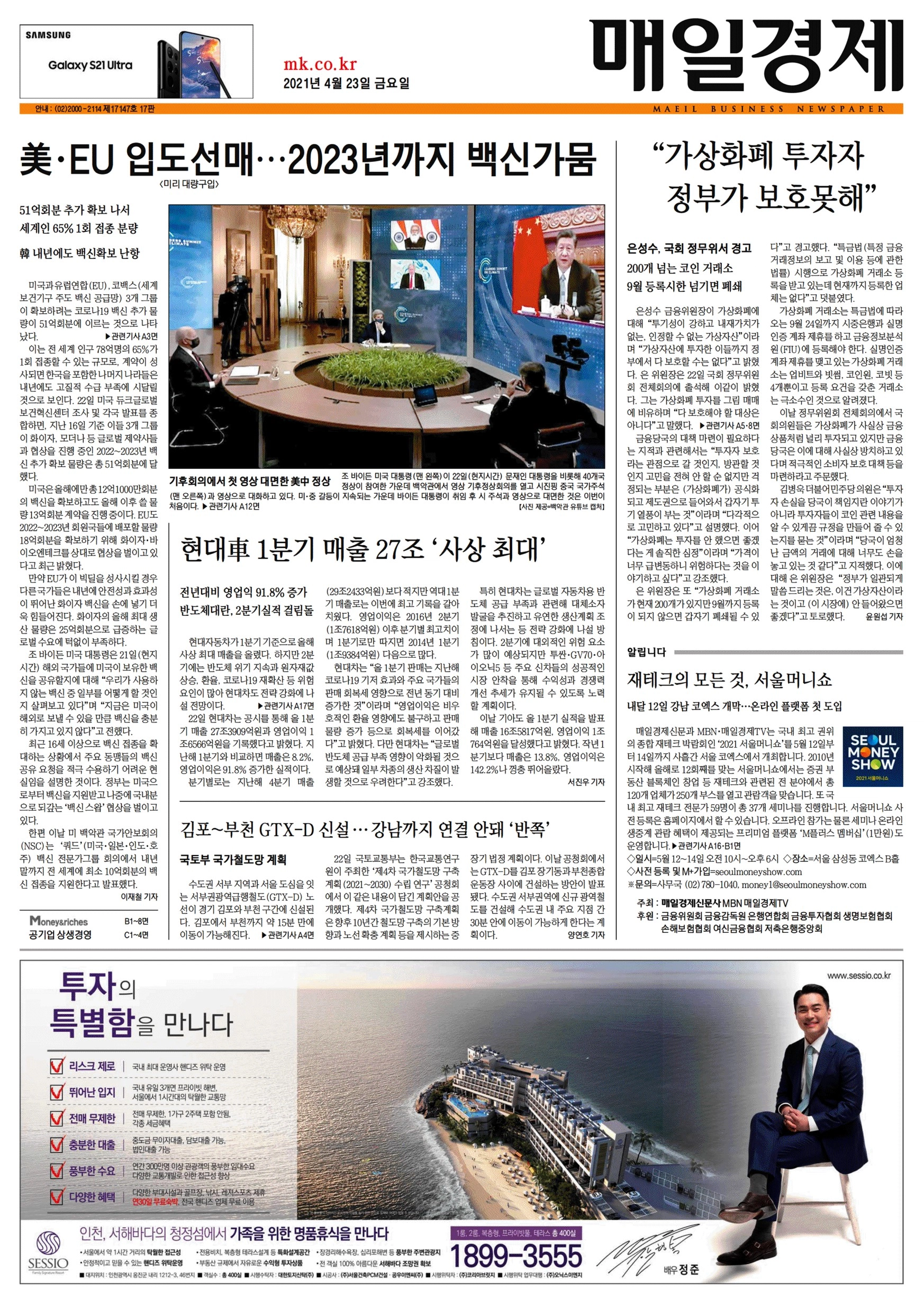 | 210416금 종이신문 1면 모음 - 바이든백신, 지방독자방역, 코로나3고, 세월호7주기, 온라인스토킹, ESG블루오션, 코인상품, 문대통령반도체, K제조엑소더스 (1) | 2021.04.16 |