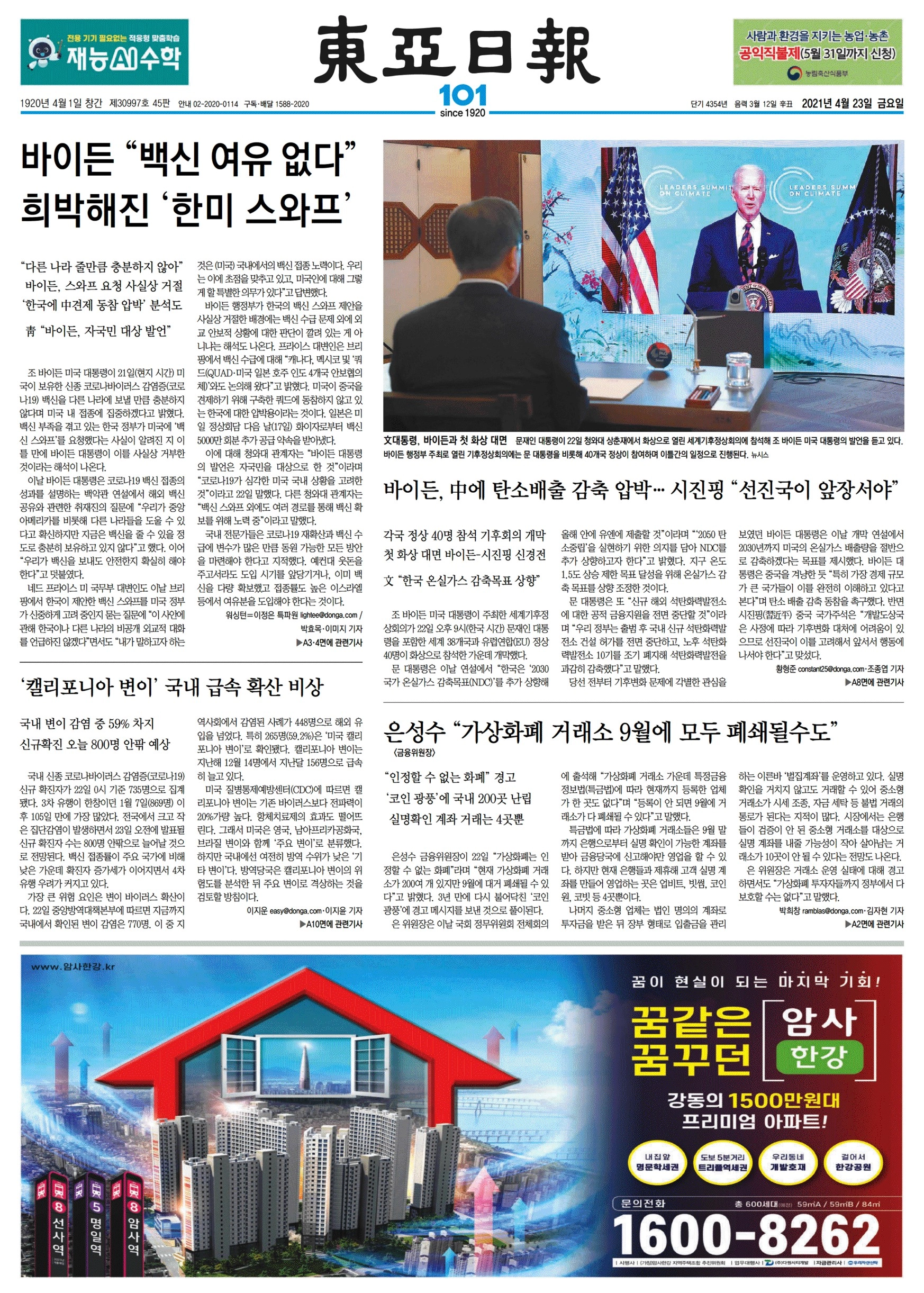 | 동아일보 | 바이든 백신여유 없다 희박해진 한미 스와프 |