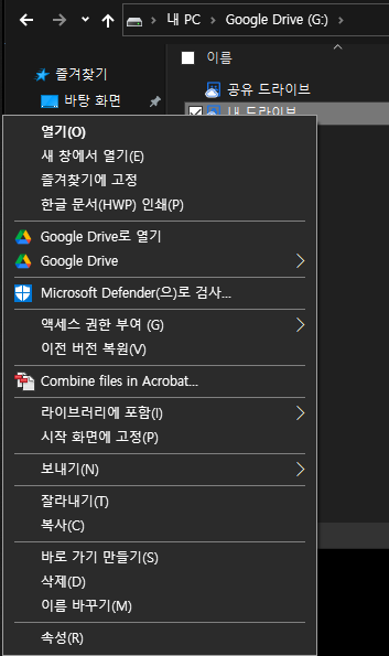 1. 설정 원하는 폴더에서 마우스 올리고 우클릭 - 속성