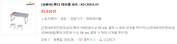 코베아...의자 두개 들어가고 상판더 더 크네..흠...가격만 착했으면 이걸 샀을지도..