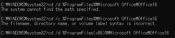 2) cd /d %ProgramFiles(x86)%\Microsoft Office\Office16