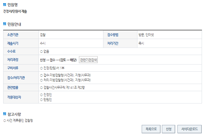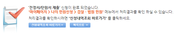 3) 첫페이지 아랫쪽 진정서/탄원서 오른쪽에 보이는 "신청" 클릭