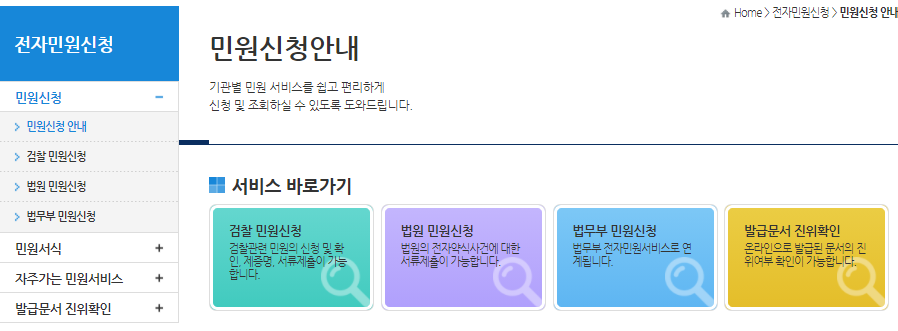 2) 검찰민원신청 클릭