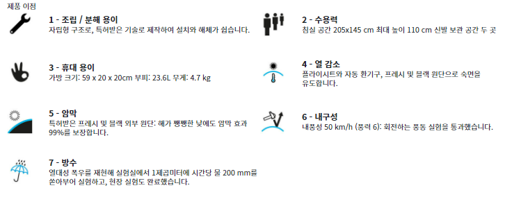 이름 : 2SECONDS 이지 프레시 & 블랙 암막 캠핑 텐트 2인용