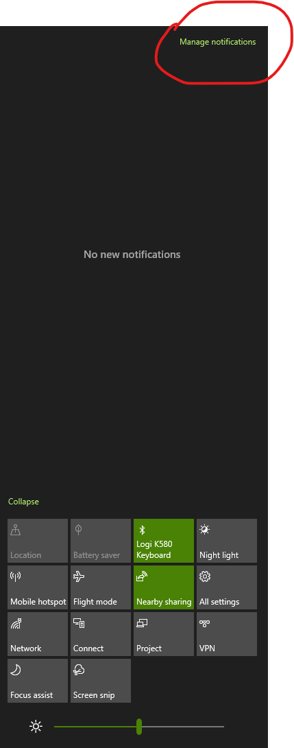 윈도우키+A를 누르면 윈도우 알림센터가 뜨고!