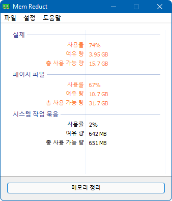 Mem Reduct 라는 프로그램이 유명한 듯 해서 다운받고,