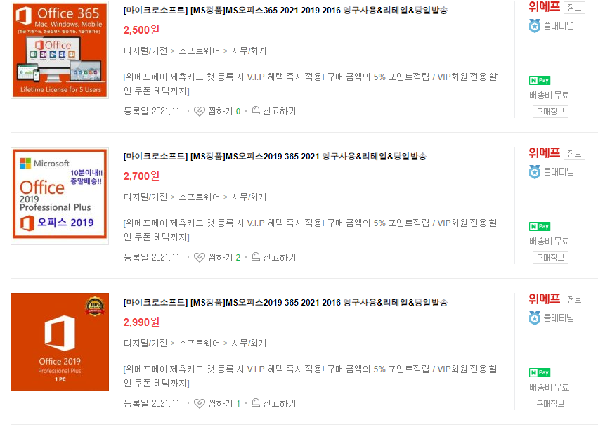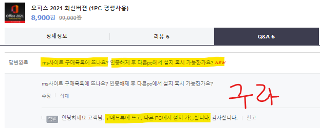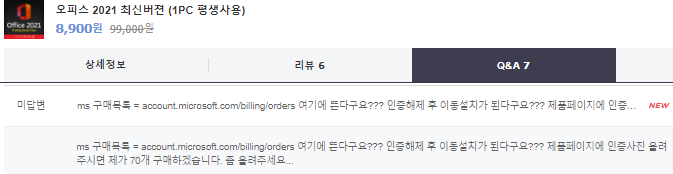 싼 MS 오피스 2019 2021 계정이 보인다면? 아래 두가지 질문을 꼭 남겨서 확인하고 구매하자.