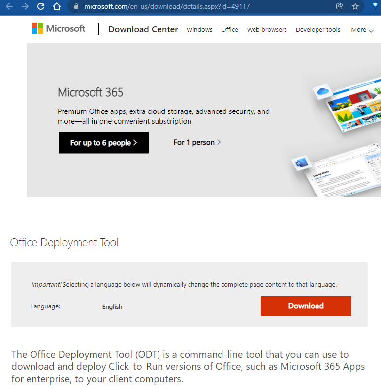 Download Office Deployment Tool from Official Microsoft Download Center