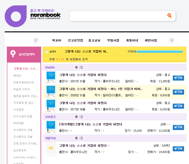 책 가격비교 사이트 노란북