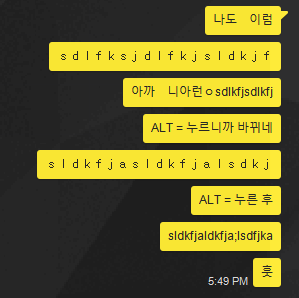업무관련 메세지를 보내려는데 갑자기 글자 간격이 커졌다고 헬프요청이 왔다.