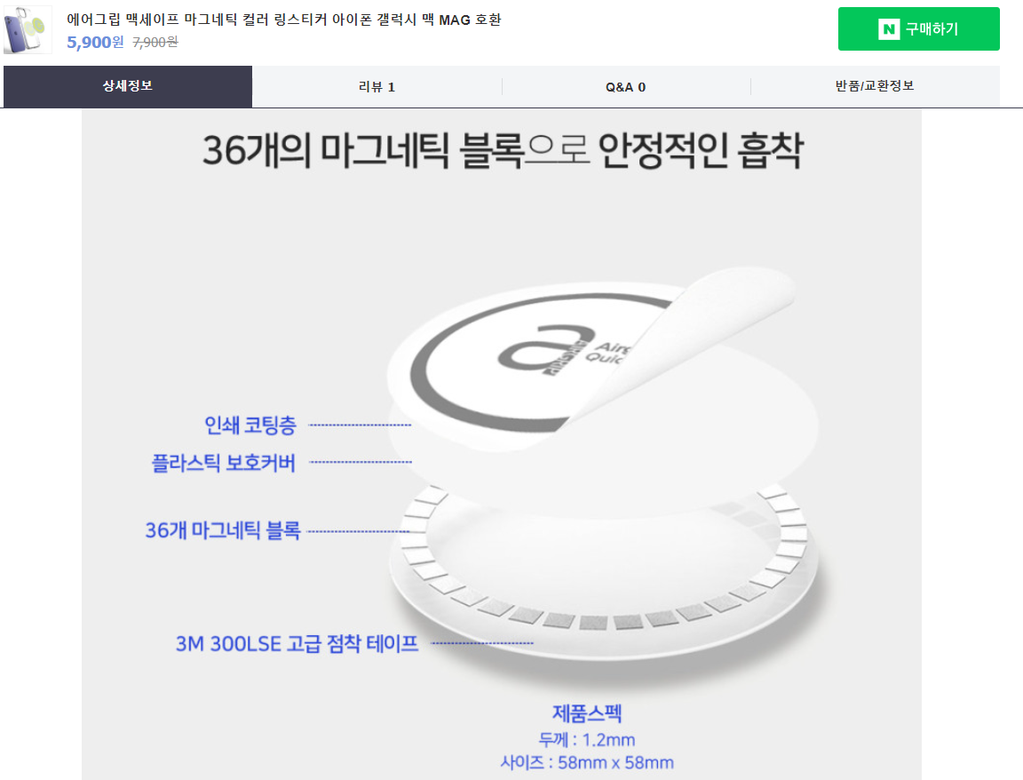 네이버쇼핑 검색해보면, 더 싼 금속링도 있지만 이런건 자석아님! 걍 철판때기임