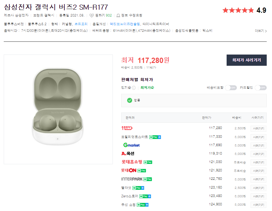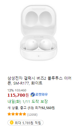 갤럭시 버즈2의 경우 새거 출고가14.9에 최저가가 11.7정도