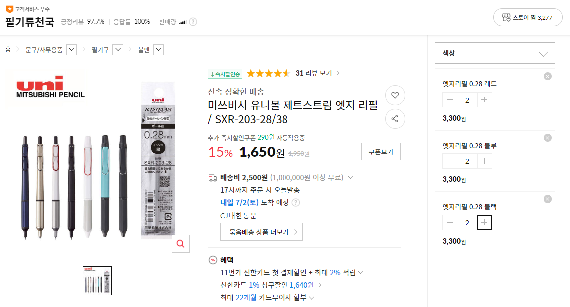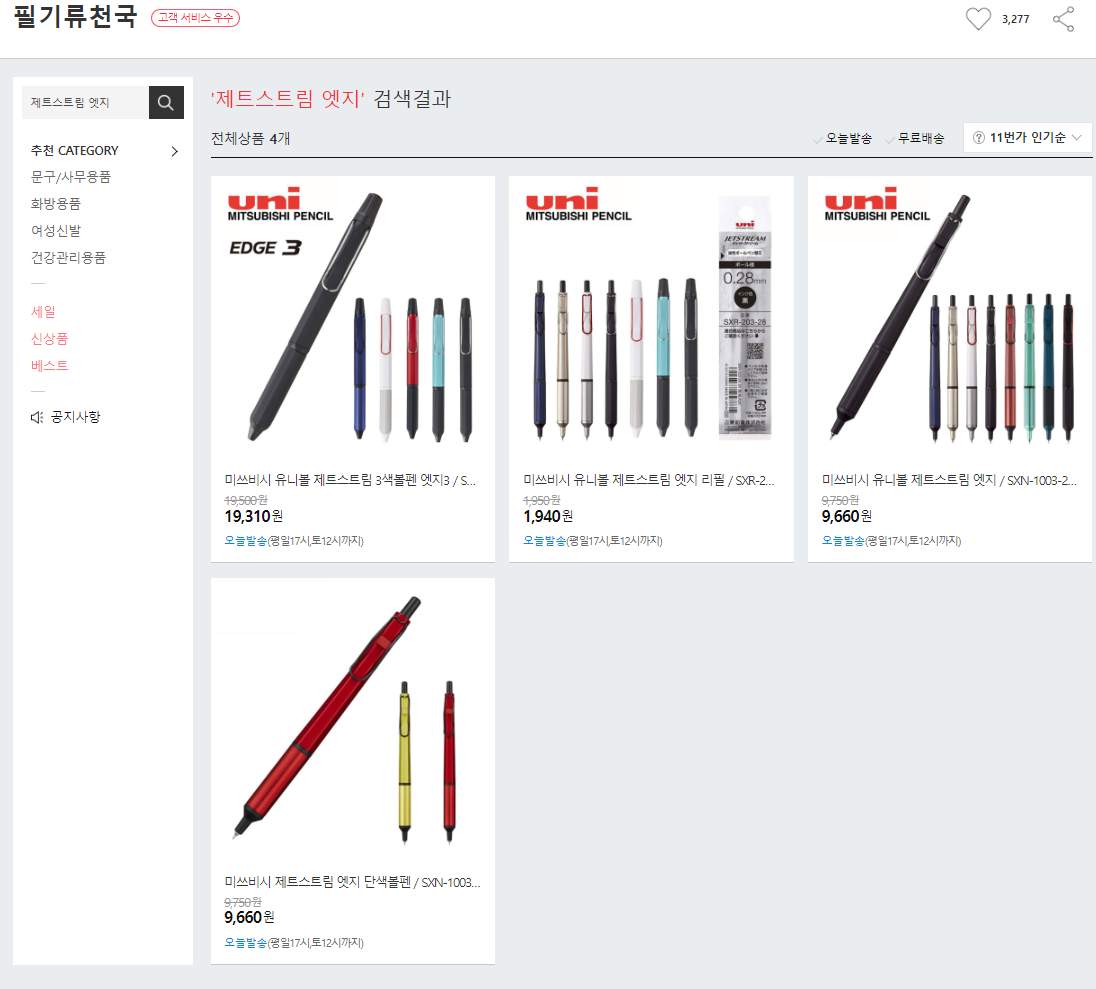 그러고 보니 엥 필기류천국이네? 너 판매자샵 검색에선 리필은 안 보여줬잖냐...ㅋㅋ 오류인 듯