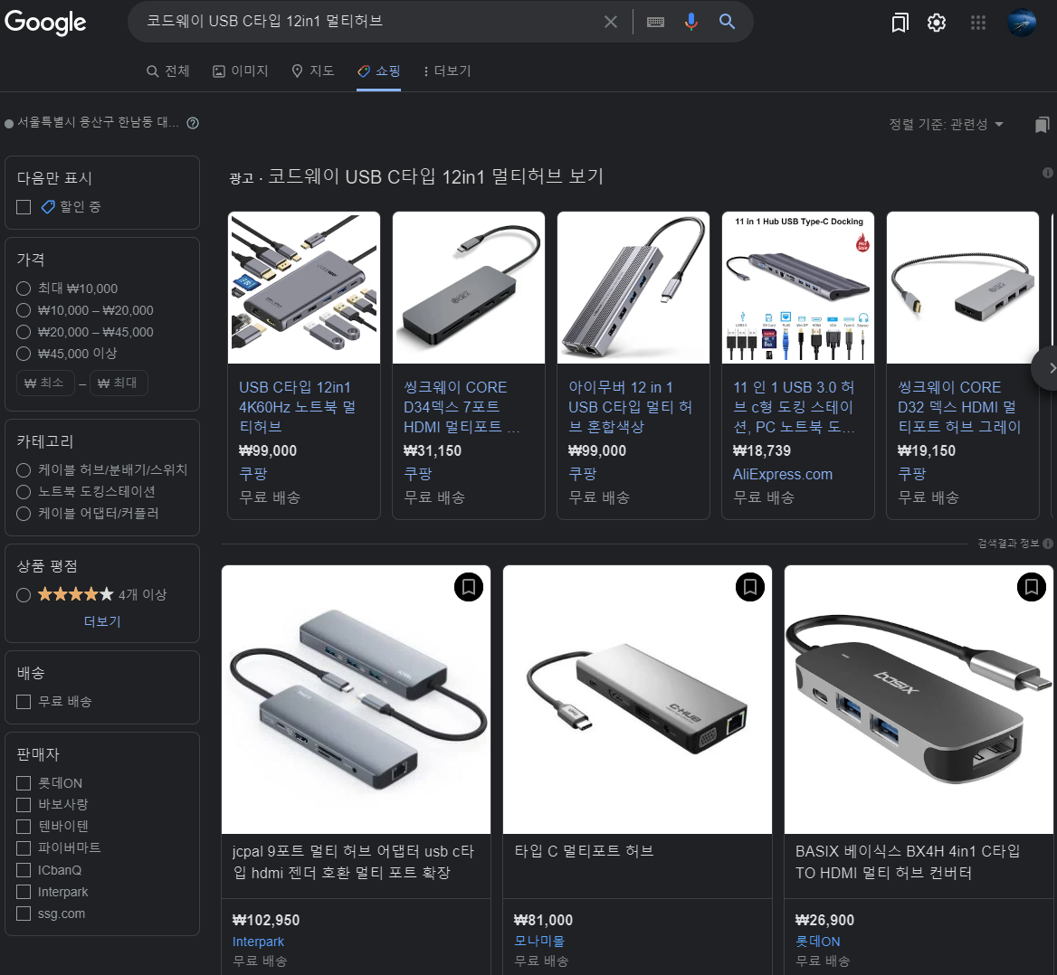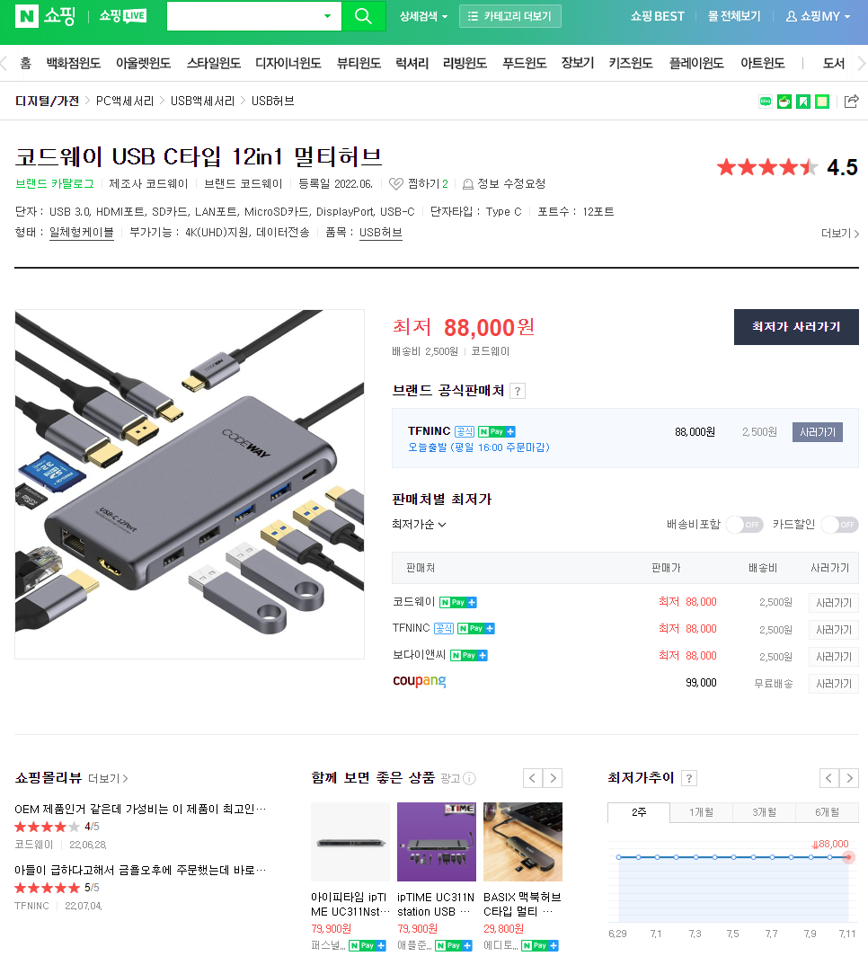 최저가는 네이버에서 잘 찾아줌. 발견은 쿠팡에서 했지만