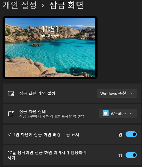 *개인설정 > 잠금화면