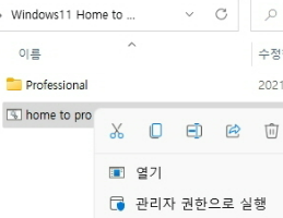 home to pro.bat 파일 우클릭해서 관리자권한으로 실행 빡 하면,