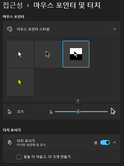 3) 접근성 > 마우스커서스타일