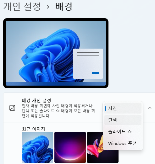 배경 > 사진에서 단색