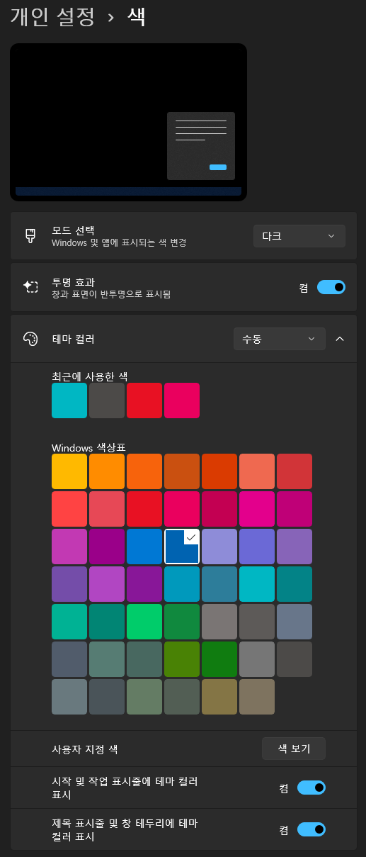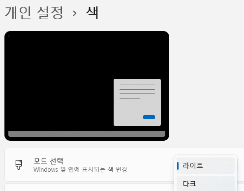 색 > 다크모드&테마컬러