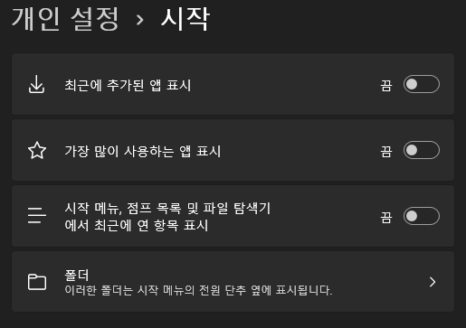 *개인설정 > 시작
