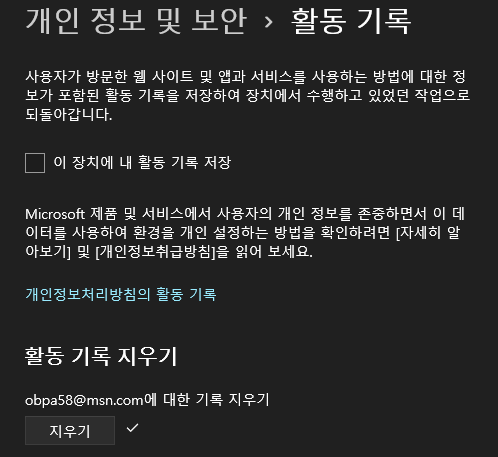 *개인정보 및 보안 > 활동기록