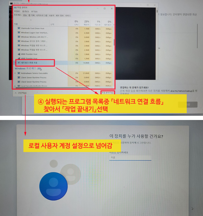 출처: 【Windows 11】 윈도우11 Home 초기 설치시 인터넷 연결없이 로컬 계정으로 세팅하는 방법