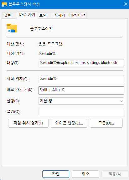 1. 바로가기 아이콘 직접 만들어서 단축키 지정하기