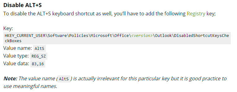 \Office\<version>\Outlook\DisabledShortcutKeysCheckBoxes